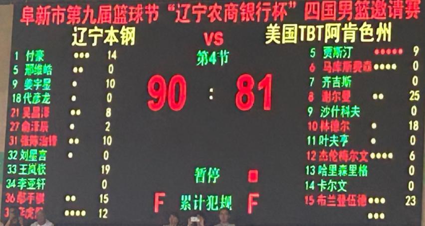 北京时间8月23日,阜新四国邀请赛第二轮打响,辽宁男篮对阵来自美国的TBT阿肯色州俱乐部。经过4节较量,辽宁男篮90-81战胜对手,拿到四国赛两连胜。